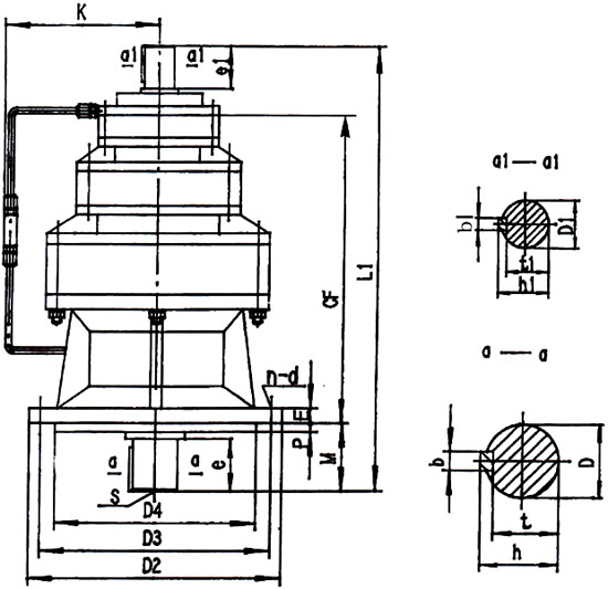 D | CF | D2 | D3 | D4 | E | M | P | S | b | h | t | e | n-d | L1 | D1 | b1 | h1 | t1 | e1 | K | 重量 |