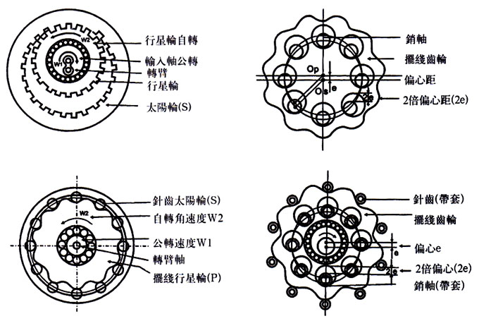 圖4為上述兩個(gè)機(jī)械組合的擺線減速器傳動(dòng)原理圖。