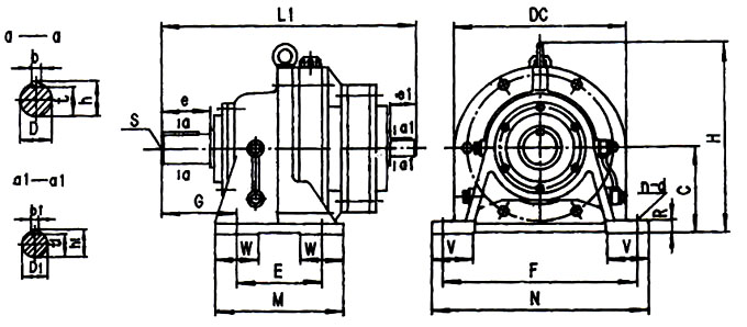 L1 e e1 G W E M S DC H C V F N R n-d D b h t D1 b1 h1 t1 Weight