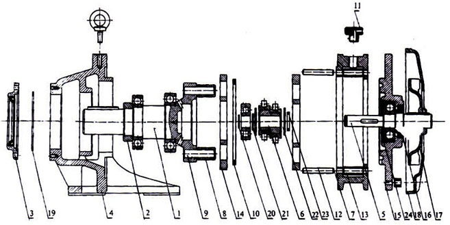 | 1、輸出軸 2、16緊固環(huán) 3、壓蓋 4、機(jī)座 5、輸入軸 6、偏心套 7、針齒殼 8、銷套 9、銷軸 10、間隔環(huán) 11、通氣帽 12、針齒銷 13、針齒套 14、擺線輪 15、法蘭盤 17、風(fēng)扇葉 18、風(fēng)扇罩 19、止動(dòng)環(huán) 20、軸用擋圈 21、擋圈 22、擋圈 23、擋圈 24、孔用擋圈 表九 擺線針輪減速機(jī)臥式油面高度尺寸 | |||||||||||